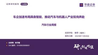[汽车零部件]2025-11-30-华鑫证券-汽车行业周报:车企加速布局具身智能,推动汽车与机器人产业双向奔赴-38页(银创产业通www.chanyetong.net)