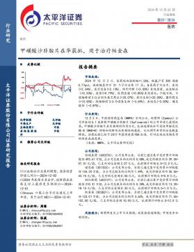 [医药]2024-12-03-太平洋-医药行业周报:甲磺酸沙非胺片在华获批,用于治疗帕金森-3页(银创产业通www.chanyetong.net)