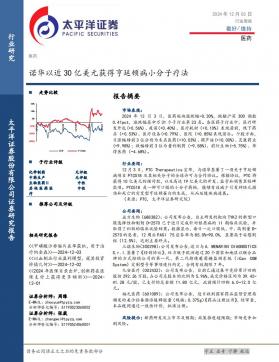 [医药]2024-12-04-太平洋-医药行业周报:诺华以近30亿美元获得亨廷顿病小分子疗法-3页(银创产业通www.chanyetong.net)