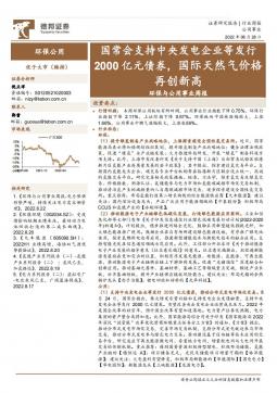 [化工]2022-08-29-德邦证券-环保与公用事业周报:国常会支持中央发电企业等发行2000亿元债券,国际天然气价格再创新高-30页(银创产业通www.chanyetong.net)