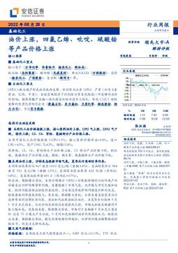 [化工]2022-08-28-安信证券-基础化工行业周报:油价上涨,四氯乙烯、吡啶、硫酸铵等产品价格上涨-5页(银创产业通www.chanyetong.net)