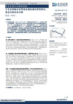 [金属]2024-04-27-东吴证券-有色金属行业跟踪周报:中东局势缓和使得黄金避险属性得到弱化,黄金价格迎来回调-20页(银创产业通www.chanyetong.net)