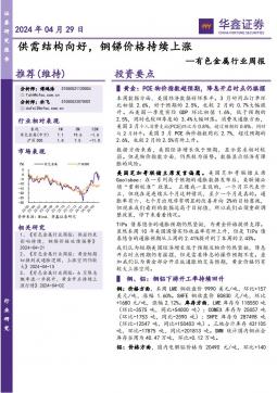 [金属]2024-04-29-华鑫证券-有色金属行业周报:供需结构向好,铜锑价格持续上涨-19页(银创产业通www.chanyetong.net)