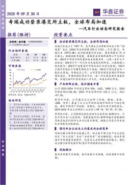 [汽车零部件]2025-09-30-华鑫证券-汽车行业动态研究报告:奇瑞成功登录港交所主板,全球布局加速-4页(银创产业通www.chanyetong.net)