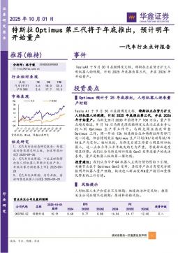 [汽车零部件]2025-10-03-华鑫证券-汽车行业点评报告:特斯拉Optimus第三代将于年底推出,预计明年开始量产-4页(银创产业通www.chanyetong.net)