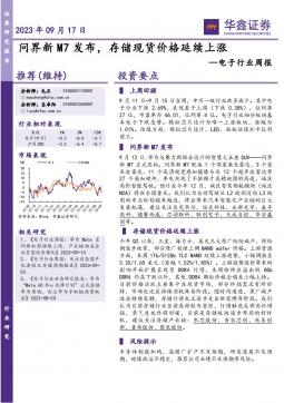 [半导体]2023-09-17-华鑫证券-电子行业周报:问界新M7发布,存储现货价格延续上涨-42页(银创产业通www.chanyetong.net)