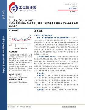 [化工]2025-10-22-太平洋-化工行业周报:三代制冷剂R134a价格上涨,橡胶、炭黑等原材料价格下跌或提高轮胎盈利能力-34页(银创产业通www.chanyetong.net)