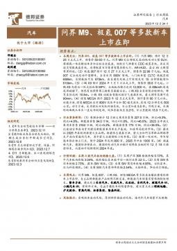 [汽车零部件]2023-12-25-德邦证券-汽车行业周报:问界M9、极氪007等多款新车上市在即-15页(银创产业通www.chanyetong.net)(银创产业通www.chanyetong.net)