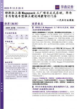 [汽车零部件]2023-12-25-华鑫证券-汽车行业周报:特斯拉上海Megapack工厂项目正式启动,华为专为智选车型独立建设鸿蒙智行门店-15页(银创产业通www.chanyetong.net)(银创产业通www.chanyetong.net)