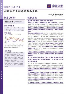 [汽车零部件]2023-11-20-华鑫证券-汽车行业周报:特斯拉产业链再迎布局良机-12页(银创产业通www.chanyetong.net)(银创产业通www.chanyetong.net)