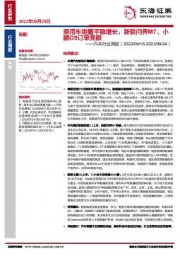 [汽车零部件]2023-09-25-东海证券-汽车行业周报:乘用车销量平稳增长,新款问界M7、小鹏G9订单亮眼-13页(银创产业通www.chanyetong.net)(银创产业通www.chanyetong.net)