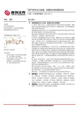 [汽车零部件]2023-09-19-首创证券-汽车行业简评报告:国产电车出口加速,欧盟反补贴调查启动-9页(银创产业通www.chanyetong.net)(银创产业通www.chanyetong.net)