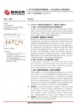 [汽车零部件]2023-09-13-首创证券-汽车行业简评报告:8月汽车销量创同期新高,自主品牌出口表现强劲-12页(银创产业通www.chanyetong.net)(银创产业通www.chanyetong.net)