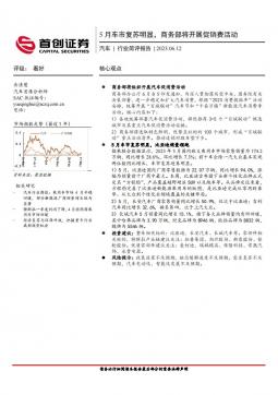[汽车零部件]2023-06-15-首创证券-汽车行业简评报告:5月车市复苏明显,商务部将开展促销费活动-11页(银创产业通www.chanyetong.net)(银创产业通www.chanyetong.net)