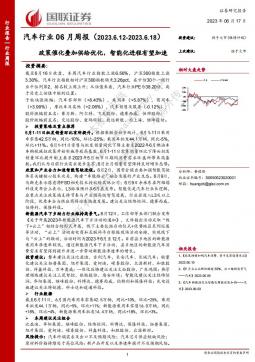 [汽车零部件]2023-06-18-国联证券-汽车行业06月周报:政策催化叠加供给优化,智能化进程有望加速-22页(银创产业通www.chanyetong.net)(银创产业通www.chanyetong.net)