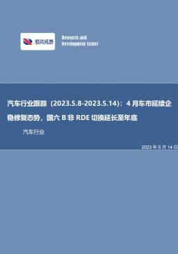 [汽车零部件]2023-05-15-信达证券-汽车行业跟踪:4月车市延续企稳修复态势,国六B非RDE切换延长至年底-27页(银创产业通www.chanyetong.net)(银创产业通www.chanyetong.net)