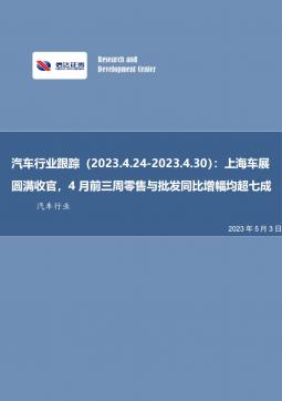 [汽车零部件]2023-05-04-信达证券-汽车行业跟踪:上海车展圆满收官,4月前三周零售批发同比增幅均超七成-24页(银创产业通www.chanyetong.net)(银创产业通www.chanyetong.net)