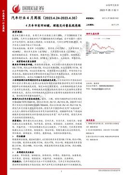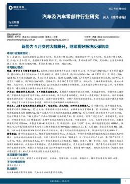 [汽车零部件]2023-05-04-国金证券-汽车及汽车零部件行业周报:新势力4月交付大幅提升,继续看好板块反弹机会-15页(银创产业通www.chanyetong.net)(银创产业通www.chanyetong.net)