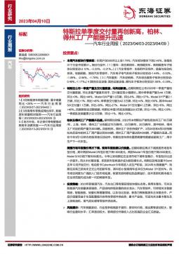 [汽车零部件]2023-04-10-东海证券-汽车行业周报:特斯拉单季度交付量再创新高,柏林、得州工厂产能提升迅速-14页(银创产业通www.chanyetong.net)(银创产业通www.chanyetong.net)