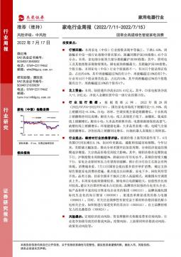 [家电家居]2022-07-15-国信证券-家电行业2022年中报前瞻:疫情冲击拖累收入,盈利有望持续改善-15页(银创产业通www.chanyetong.net)(银创产业通www.chanyetong.net)