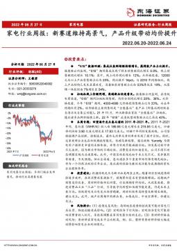 [家电家居]2022-06-27-东海证券-家电行业周报:新赛道维持高景气,产品升级带动均价提升-10页(银创产业通www.chanyetong.net)(银创产业通www.chanyetong.net)