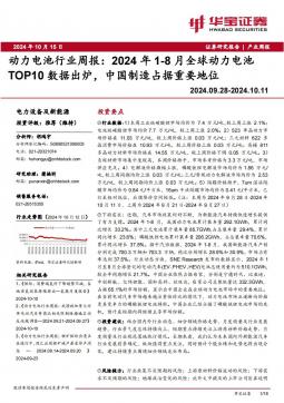 [电池]2024-10-15-华宝证券-动力电池行业周报:2024年1-8月全球动力电池TOP10数据出炉,中国制造占据重要地位-18页(银创产业通www.chanyetong.net)(银创产业通www.chanyetong.net)