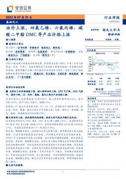 [化工]2022-08-01-安信证券-基础化工行业周报:油价上涨,四氯乙烯、六氟丙烯、碳酸二甲酯DMC等产品价格上涨-5页(银创产业通www.chanyetong.net)