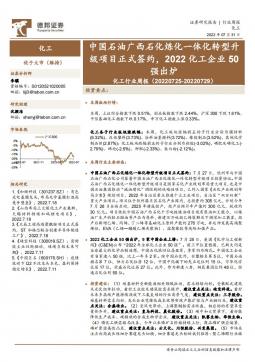 [化工]2022-08-01-德邦证券-化工行业周报:中国石油广西石化炼化一体化转型升级项目正式签约,2022化工企业50强出炉-25页(银创产业通www.chanyetong.net)