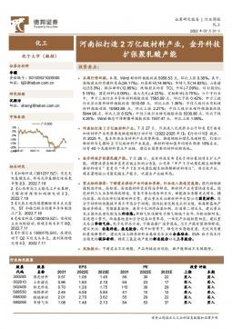 [化工]2022-08-01-德邦证券-化工行业周报:河南拟打造2万亿级材料产业,金丹科技扩张聚乳酸产能-14页(银创产业通www.chanyetong.net)