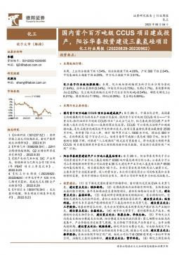 [化工]2022-09-05-德邦证券-化工行业周报:国内首个百万吨级CCUS项目建成投产,阳谷华泰投资建设三氯氢硅项目-25页(银创产业通www.chanyetong.net)