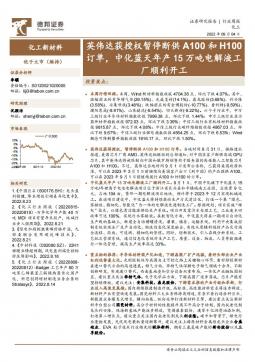 [化工]2022-09-05-德邦证券-化工新材料行业周报:英伟达获授权暂停断供A100和H100订单,中化蓝天年产15万吨电解液工厂顺利开工-14页(银创产业通www.chanyetong.net)
