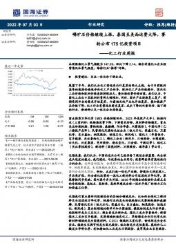 [化工]2022-07-04-国海证券-化工行业周报:磷矿石价格继续上涨,泰国至美西运费大降,赛轮公布175亿投资项目-59页(银创产业通www.chanyetong.net)