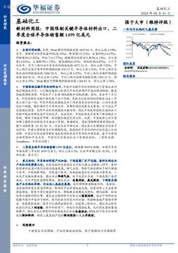 [半导体材料]2024-09-01-华福证券-新材料周报:中国限制关键半导体材料出口,二季度全球半导体销售额1499亿美元-10页(银创产业通www.chanyetong.net)