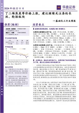 [化工]2024-03-11-华鑫证券-基础化工行业周报:丁二烯焦炭等价格上涨,建议继续关注涤纶长丝、轮胎板块-29页(银创产业通www.chanyetong.net)