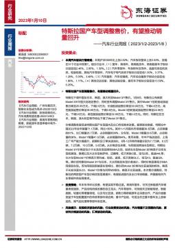 [汽车整车]2023-01-10-东海证券-汽车行业周报:特斯拉国产车型调整售价,有望推动销量回升-14页(银创产业通www.chanyetong.net)(银创产业通www.chanyetong.net)