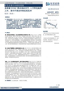 [金属]2024-03-23-东吴证券-有色金属行业跟踪周报:美联储FOMC释放鸽派信号,6月降息概率上升,海内外黄金价格表现良好-20页(银创产业通www.chanyetong.net)