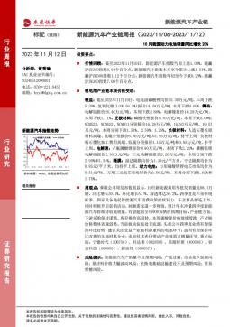 [新能源汽车]2023-11-12-东莞证券-新能源汽车产业链周报:10月我国动力电池销量同比增长20%-13页(银创产业通www.chanyetong.net)