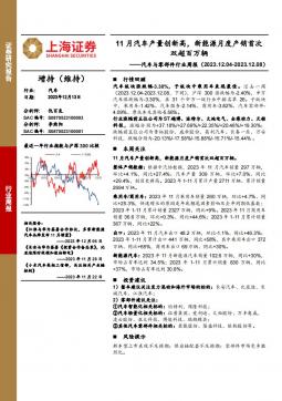 [新能源汽车]2023-12-14-上海证券-汽车与零部件行业周报:11月汽车产量创新高,新能源月度产销首次双超百万辆-13页(银创产业通www.chanyetong.net)(银创产业通www.chanyetong.net)