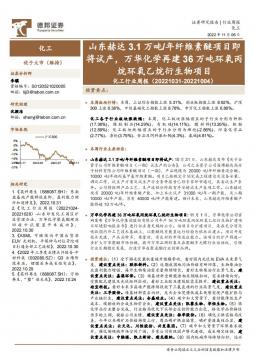 [化工]2022-11-07-德邦证券-化工行业周报:山东赫达3.1万吨-年纤维素醚项目即将试产,万华化学再建36万吨环氧丙烷环氧乙烷衍生物项目-25页(银创产业通www.chanyetong.net)