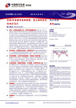 [化工]2022-11-01-中国银河-化工行业周报:价格-价差整体表现弱势,重点推荐成长性细分龙头-18页(银创产业通www.chanyetong.net)