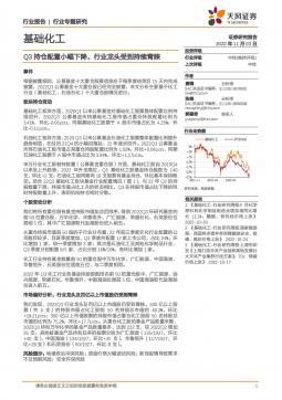 [化工]2022-11-04-天风证券-基础化工行业专题研究:Q3持仓配置小幅下降,行业龙头受到持续青睐-16页(银创产业通www.chanyetong.net)