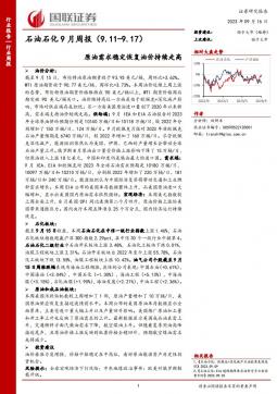 [化工]2023-09-17-国联证券-石油石化9月周报:原油需求稳定恢复油价持续走高-22页(银创产业通www.chanyetong.net)