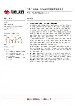 [汽车零部件]2023-01-10-首创证券-汽车行业周报:2024年汽车销量有望稳增长-10页(银创产业通www.chanyetong.net)(银创产业通www.chanyetong.net)