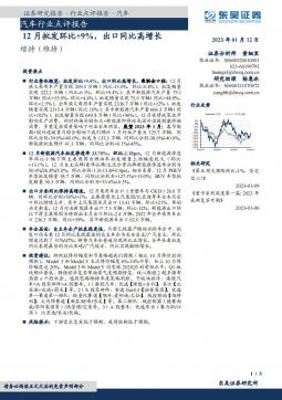 [汽车零部件]2023-01-12-东吴证券-汽车行业点评报告:12月批发环比+9%,出口同比高增长-5页(银创产业通www.chanyetong.net)