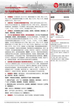 [汽车零部件]2024-09-08-民生证券-汽车和汽车零部件行业周报:Q2汽车板块盈利向好 迎旺季+新车催化-31页(银创产业通www.chanyetong.net)