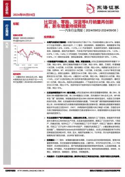 [汽车零部件]2024-09-09-东海证券-汽车行业周报:比亚迪、零跑、深蓝等8月销量再创新高,新车增量持续释放-13页(银创产业通www.chanyetong.net)(银创产业通www.chanyetong.net)