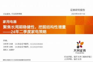 [家电家居]2024-04-11-天风证券-家用电器行业24年二季度家电策略:聚焦长周期稳健性,挖掘结构性增量-46页(银创产业通www.chanyetong.net)(银创产业通www.chanyetong.net)