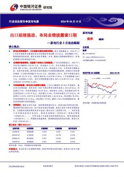 [家电家居]2024-04-11-中国银河-家电行业3月动态跟踪:出口延续强劲,布局业绩披露窗口期-20页(银创产业通www.chanyetong.net)(银创产业通www.chanyetong.net)