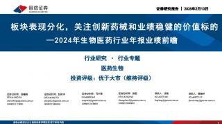 [医药]2025-02-13-国信证券-2024年生物医药行业年报业绩前瞻:板块表现分化,关注创新药械和业绩稳健的价值标的-20页(银创产业通www.chanyetong.net)