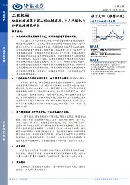 [工程机械]2024-10-15-华福证券-工程机械行业动态跟踪:积极财政政策支撑工程机械需求,9月挖掘机内外销延续增长势头-2页(银创产业通www.chanyetong.net)(银创产业通www.chanyetong.net)